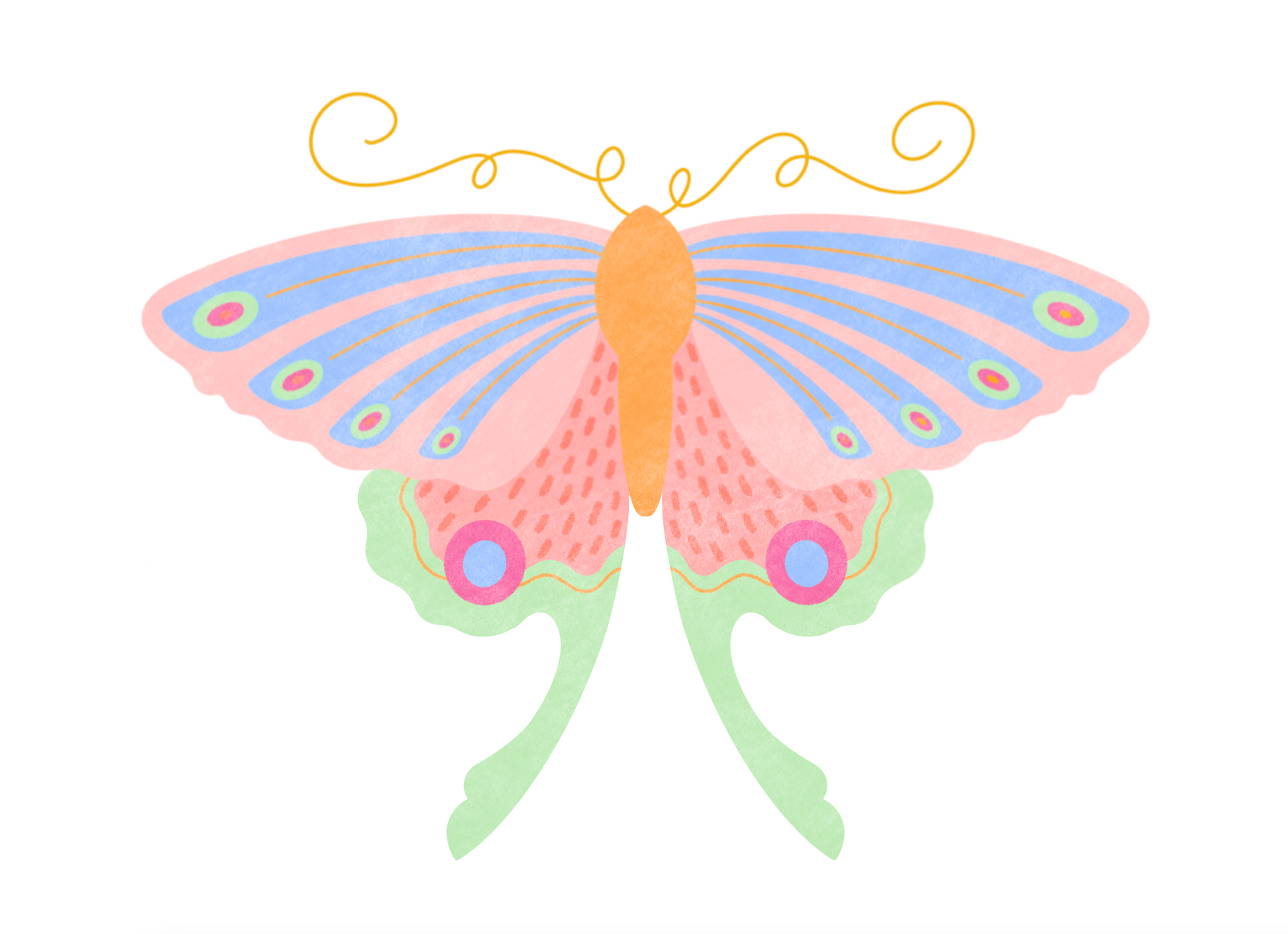 Moth No. 2 Hand Embellished Art Print is a print of my hand drawn, digital design of a pink moth with vibrant colors and whimsical patterns. Each print is hand embellished with metallic gold, making no two prints alike! These butterfly designs are used for my hand painted ceramic pieces. Now you can have a whimsical butterfly on your wall! <3